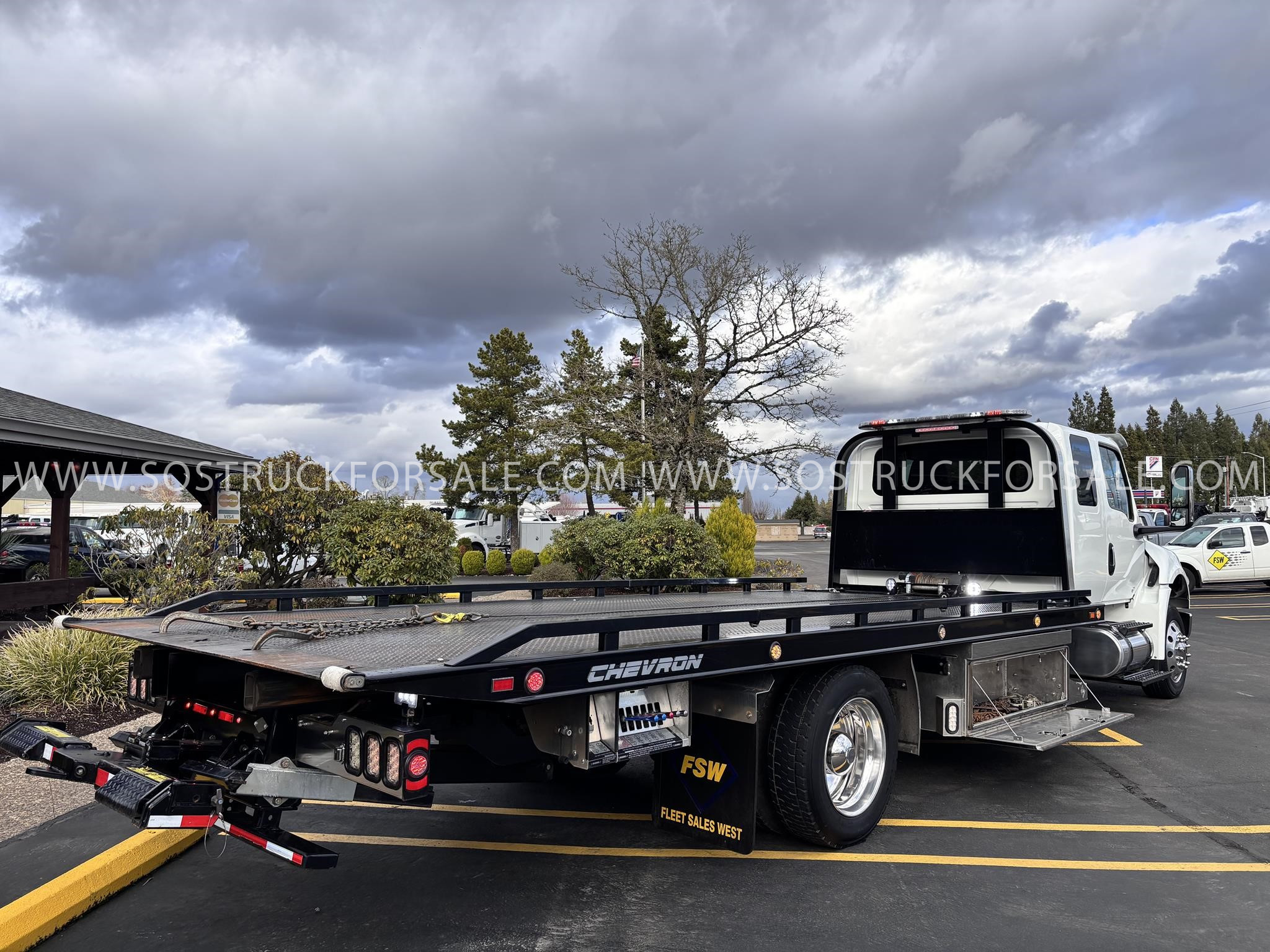 Rollback tow truck for sale 2025 International MV Extended Cab With a Chevron 12 Series LCG 21.5’ Year: 2025 - 16,121 miles Price: $134,900 Call Fleet Sales West 503-982-5095 2025 International Model MV Extended cab. Cummins ISB 6.7L, 260HP @ 2,300 rpm, 660 lb-ft @ 1,600 rpm Allison RDS-2200 6 Speed Auto Air Brakes, Air Dryer Heater, Exhaust Brake Front Axle: Dana-Spicer I-Beam 8,000lb w/ Shock Absorbers Rear Axle: Dana-Spicer 17,500lb 20,000lb Air Ride Suspension 4.88 Rear Axle Ratio Chrome Bumper, black Grille Air Ride Driver Seat Air ride Passenger Seat Rear bench seat. Idle Up, Cruise Control, Tilt-Wheel, AM/FM/CD/MP3 w/ Bluetooth, Air Horn, Engine Block Heater, Dual 40-50 Gal Alum Fuel Tanks, 7 Gal DEF Tank, Power Windows, Power Door Locks, Power heated Mirrors. A/C, 255/70R22.5 Tires w/ 22.5 Alum Wheels, Cup holders.Visor 25,500 GVWR Extended Warranties.- Engine Warranty: 5 yr / 300k miles PPI & after treatment, and Tranny Warranty: 7 yr / Unlimited Miles. Call Fleet Sales West 503-982-5095