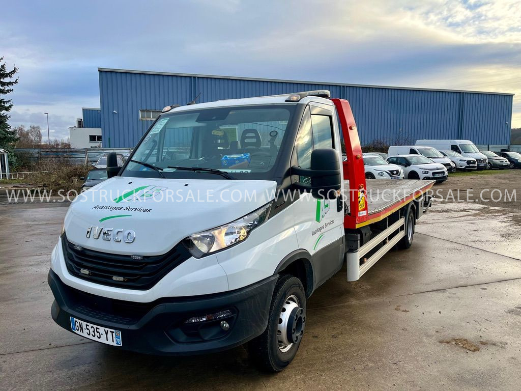 Dépanneuse plateau à vendre Iveco Daily 72C18 7,2 t JONUF Année : 16/05/2023 - 79.900 km Prix sur demande Disponible Mars 2026 Cabine simple avec pack premium Suspensions pneumatiques Empattement 4750 mm Plateau coulissant basculant JONUF Longueur utile plateau 5640 mm Panier de remorquage