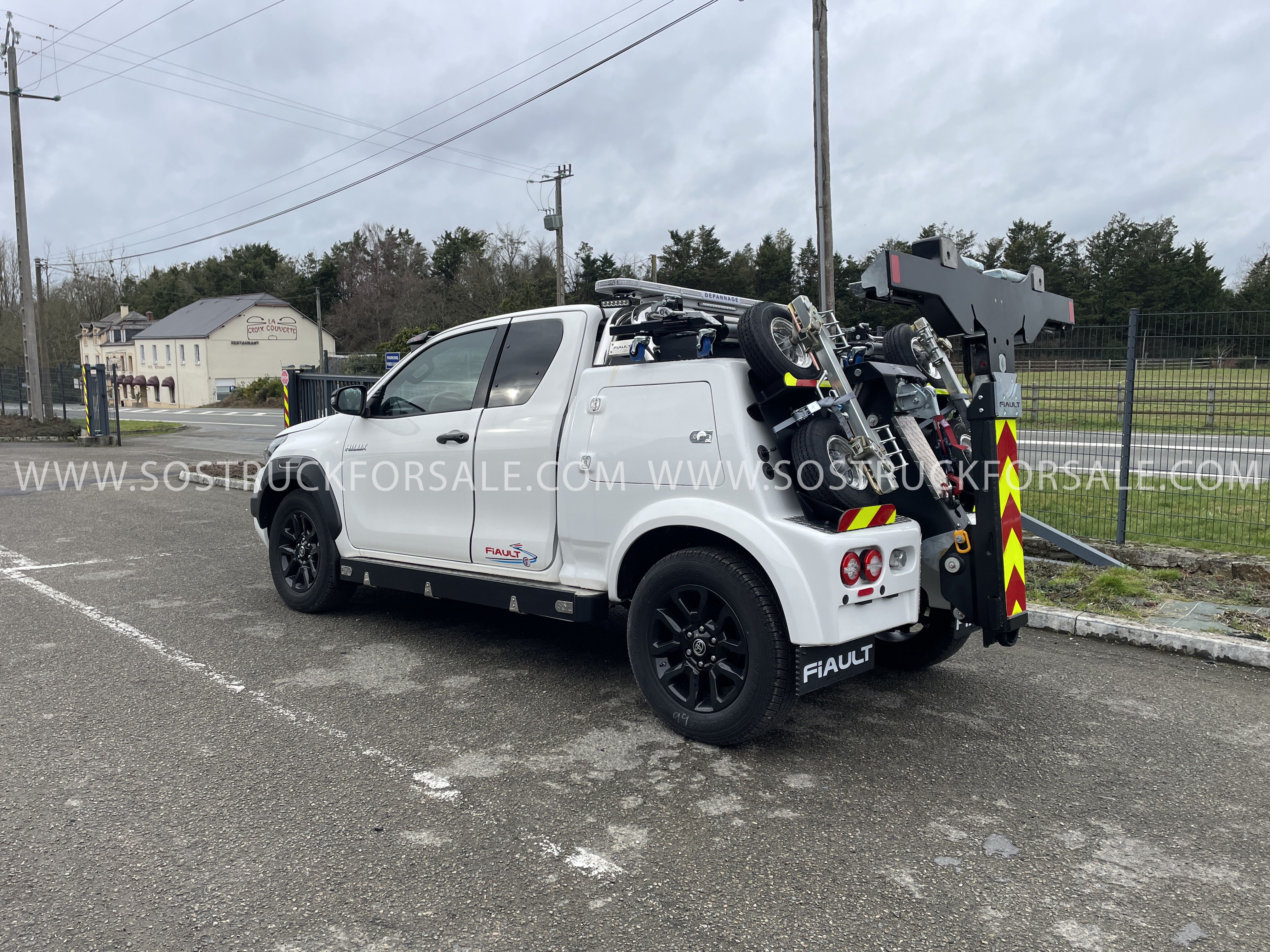 MAXILIFT PF3000 monté sur TOYOTA HILUX LÉGENDE et INVINCIBLE. Véhicule cabine profonde / Xtra Cabine, PTAC ~3150 kg. Équipement de dépanneuse complet : bras de remorquage “Z”, vérins double effet, treuil électrique 4 000 kg avec 20 m de câble, commande radio multifonctions, panier de remorquage, carrosserie en polyester avec coffres latéraux. Suspension arrière pneumatique, lest anti-cabrage. Véhicule conforme au Code de la Route. Nous contacter pour plus d’informations. (Photos non constractuelles)