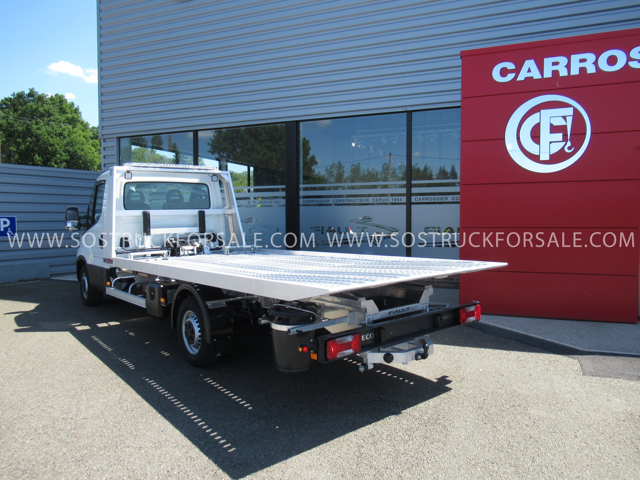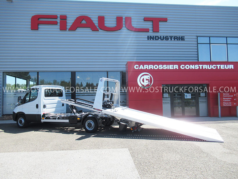 Dépanneuse plateau VL à vendre Iveco Daily 3,5 t PTC FIAULT Cabine Courte PLAT’TRANS PF20 en alu Année : 2025 - 0 km Prix sur demande Equipement FIAULT Porte-voiture basculant coulissant Plateforme renforcée Anti-dérapante Faux châssis et glissières en alu Pompe hydraulique grand débit Vérins double effet avec clapets de sécurité Treuil hydraulique de 3,6 t Commande radio pour treuil et plateau Dépanneuse NEUVE Conforme au Code de la Route. Disponible rapidement. Contactez-nous pour plus d’infos.
