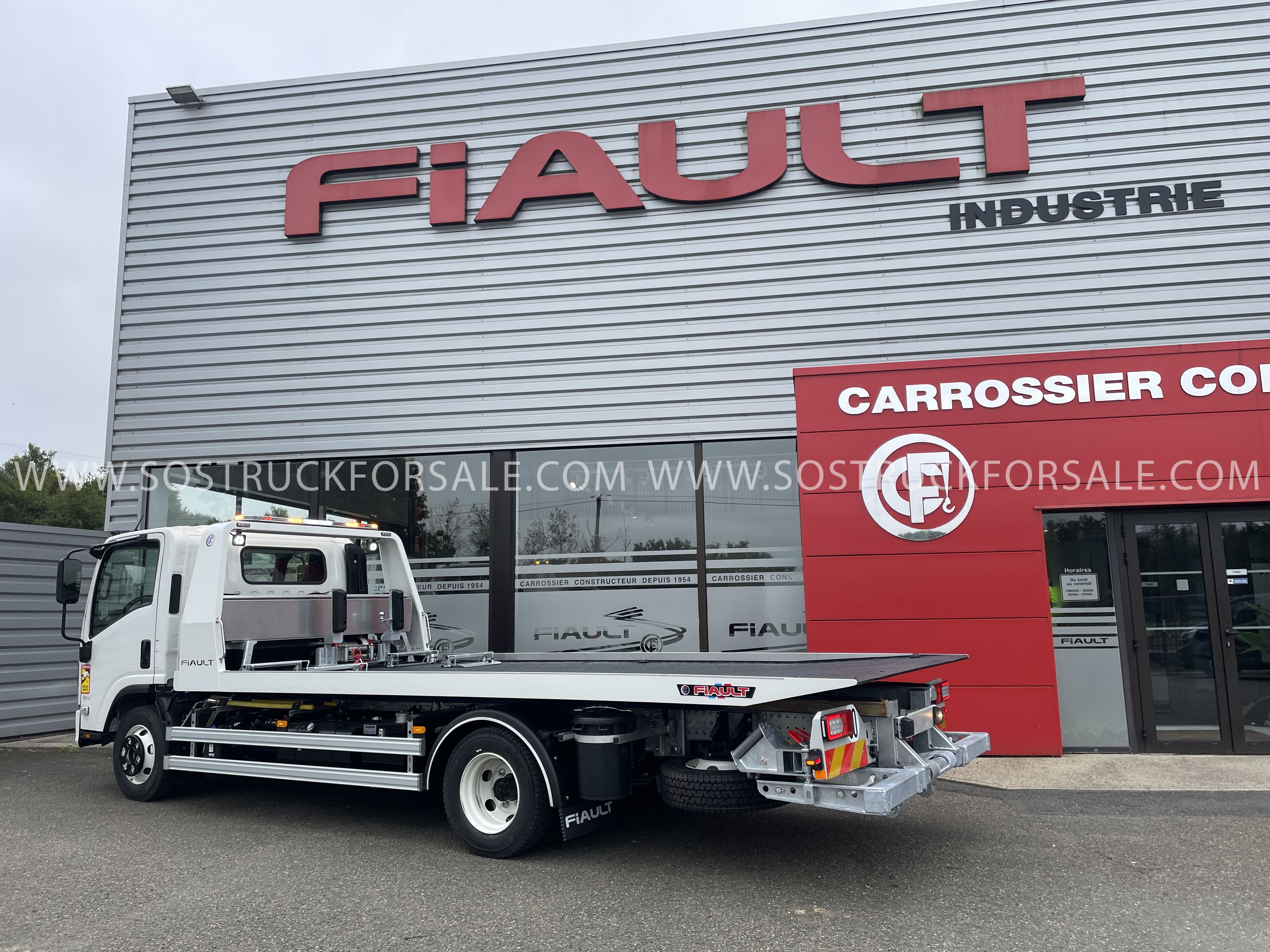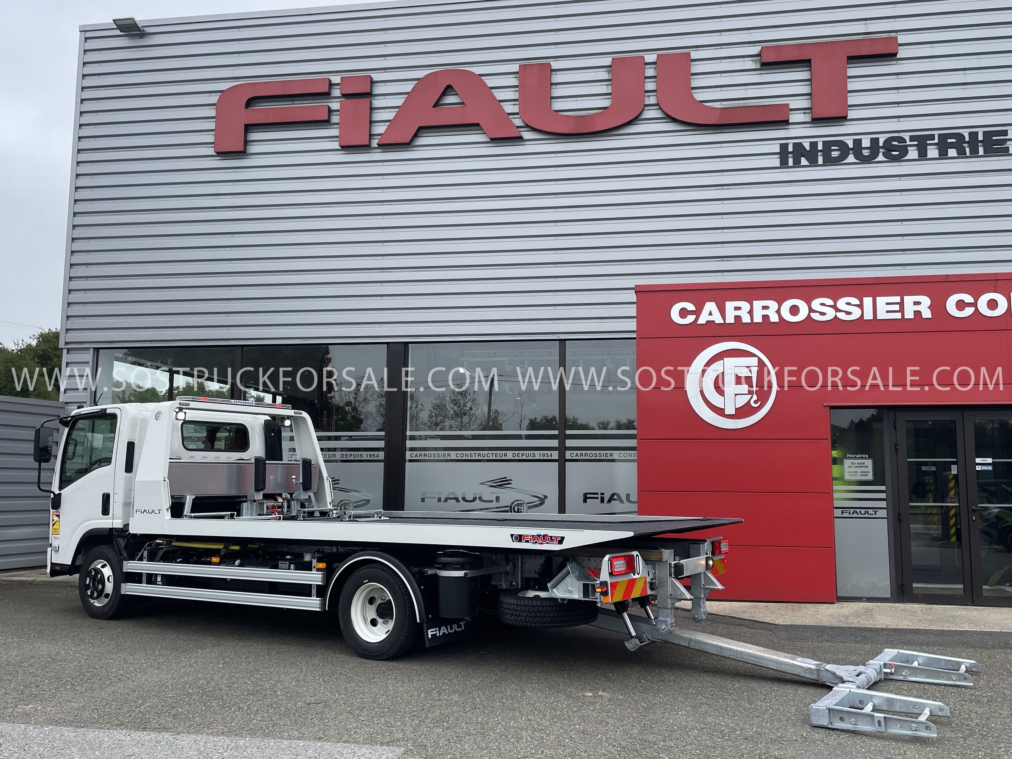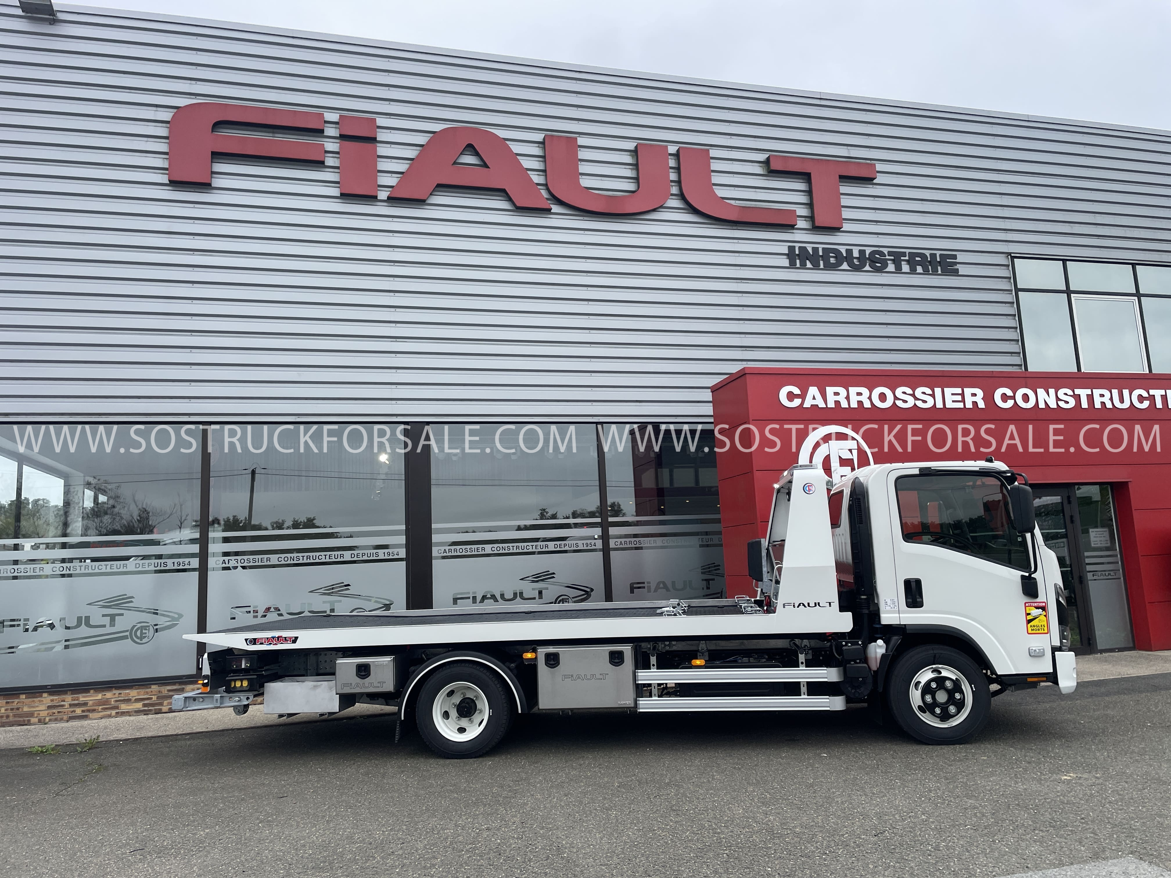 Dépanneuse plateau à vendre Isuzu / Fiault PF30 NEUF Année: 2026 - 0 km Prix sur demande Dépanneuse avec plateau coulissant basculant type PLAT’TRANS PF30 en acier sur ISUZU restylisé (190CH – 5.2L), cabine courte. Porte-voiture basculant et coulissant avec plateforme renforcée anti-dérapante. Glissières en acier galvanisé, hydraulique avec pompe grand débit, vérins à double effet avec clapets de sécurité. Treuil hydraulique fixe de 3,6T. Dépanneuse conforme au Code de la Route. Contactez-nous pour plus d’infos.