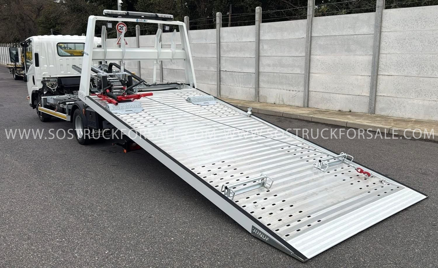 Dépanneuse Plateau à vendre Isuzu M21 3,5 t Année 2025 - 500 km Prix : 58.000 € HT Boite manuelle Empattement 3360 mm Climatisation Plateau Hydraulique Basculant Coulissant Aluminium 3,5 t Double Télécommande 6 Fonctions Kit Secu Kit Securite 1 Balai Et 1 Pelle 3 Gilets De Securite 3 Cones De Signalisation 2 Extincteurs 3 Kg + Supports Rampe de Gyro Extra Plate à Leds Feux à éclats dans PCAV Filtre Hydraulique Independant Poulie Latérale Centrage du Véhicule Coffre à Outils en Acier Fermé à Clefs Eclairage à Leds du Coffre de Controle 2 Sangles 2 Cales Mobiles de Roues Attelage à Boule à l'arrière et sur le Plateau Treuil Hydraulique 3,5 Tonnes Translate Manu
