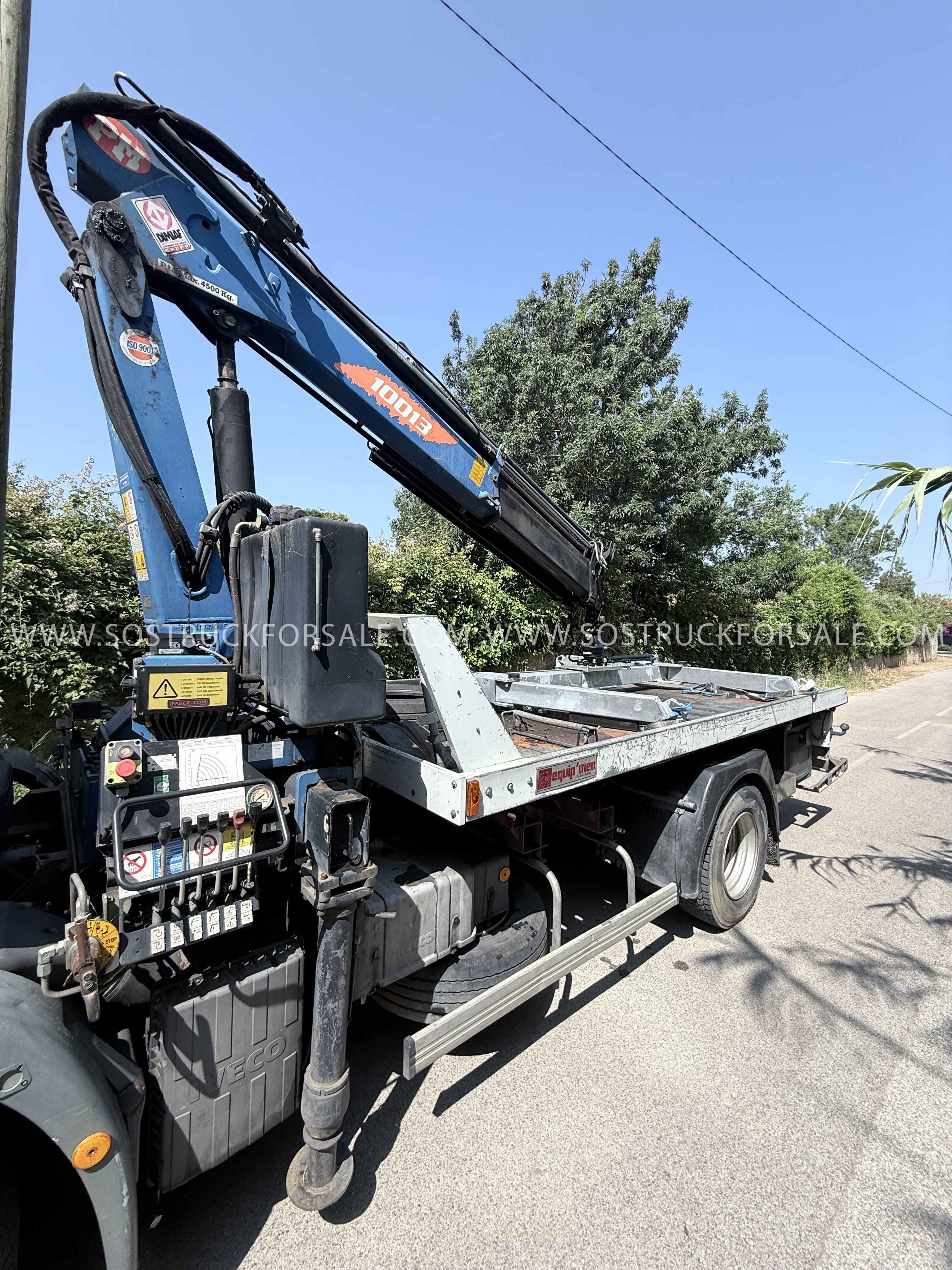 Vends Dépanneuse plateau fourrière Iveco Euro-Cargo / Equip'men Grue 12 t type fourrière Année : 2003 - 257.000 km Prix : 25.000 € HT Dépanneuse fourrière à vendre Plateau fixe extensible de 1 mètre Moteur 180 cv - Boite 6 vitesses Panier de remorquage Grue avec télécommande Support Chariot Fourrière Vérin Hydraulique Av +Ar Longueur 8,31 m Largueur 2,41 m Hauteur 3,70 m Coffre De Rangement Poids à Vide : 8,38 t PTAC : 12 tonnes Grue sur 4 Bras Avec Rotator Neuf Palonnier neuf facture Dispo Longueur Utile Sur Plateau 5m50 Largeur 2,25 m