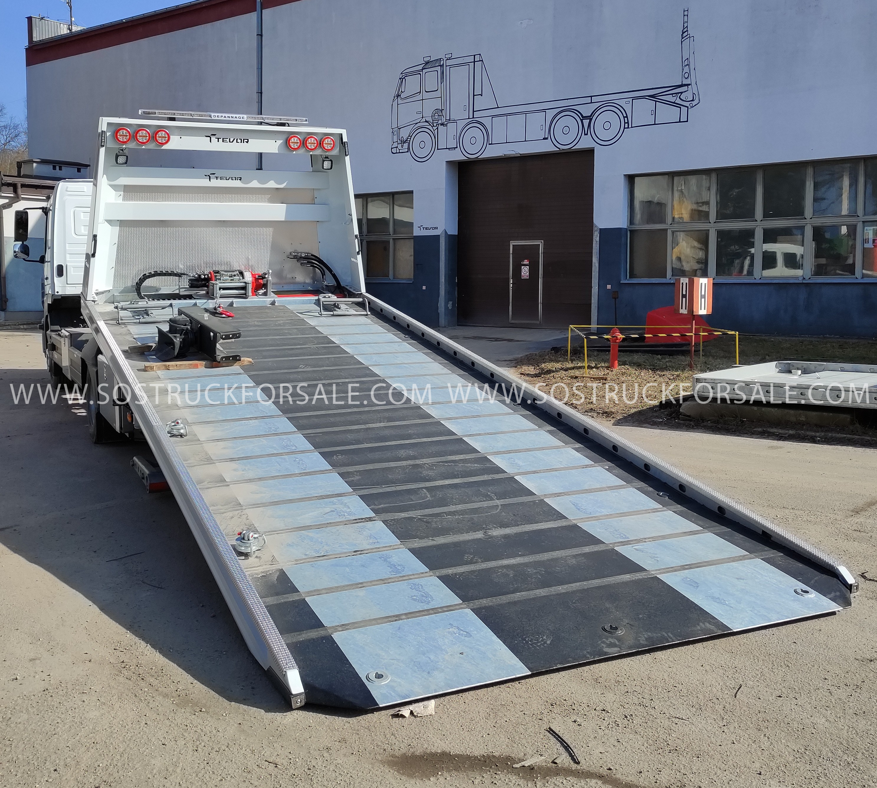 Dépanneuse plateau à vendre MAN / TEVOR ZP50C1 Neuf Année : 2026 - 1500 km Prix sur demande Dépanneuse avec plateau coulissant basculant type TEVOR ZP50C1 sur châssis Man. Dispose d’un panier de remorquage et d’un treuil hydraulique sur le plateau. Contactez-nous pour plus d’informations : 0243047263