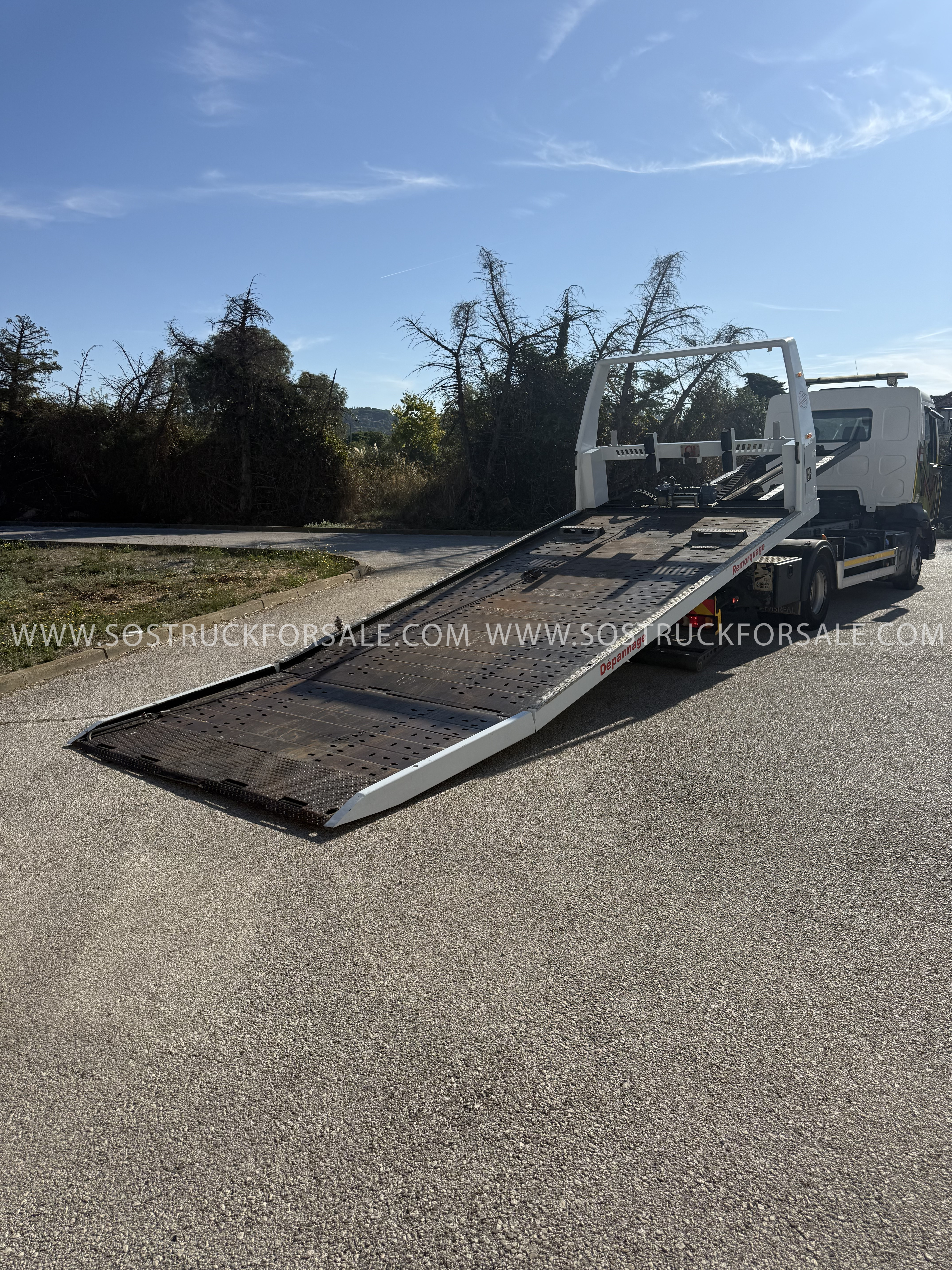 Renault D10 Équipement plateau cassant et panier Mise en circulation :12/10/2018 Kilométrage : 222000 Prix 38000HT PAS DE CLIM Dépanneuse disponible immédiatement Longueur plateau utile :6.20m Largueur plateau :2.41m Largueur plateau intérieur :2.28m Longueur camion total 8.31m Treuil Neuf Gyrophare Phare de travail Coffre de rangement Panier flèche Avec télécommande Camera de recul Poids a vide 7.360t Ptac 10t Ptra 13.500t