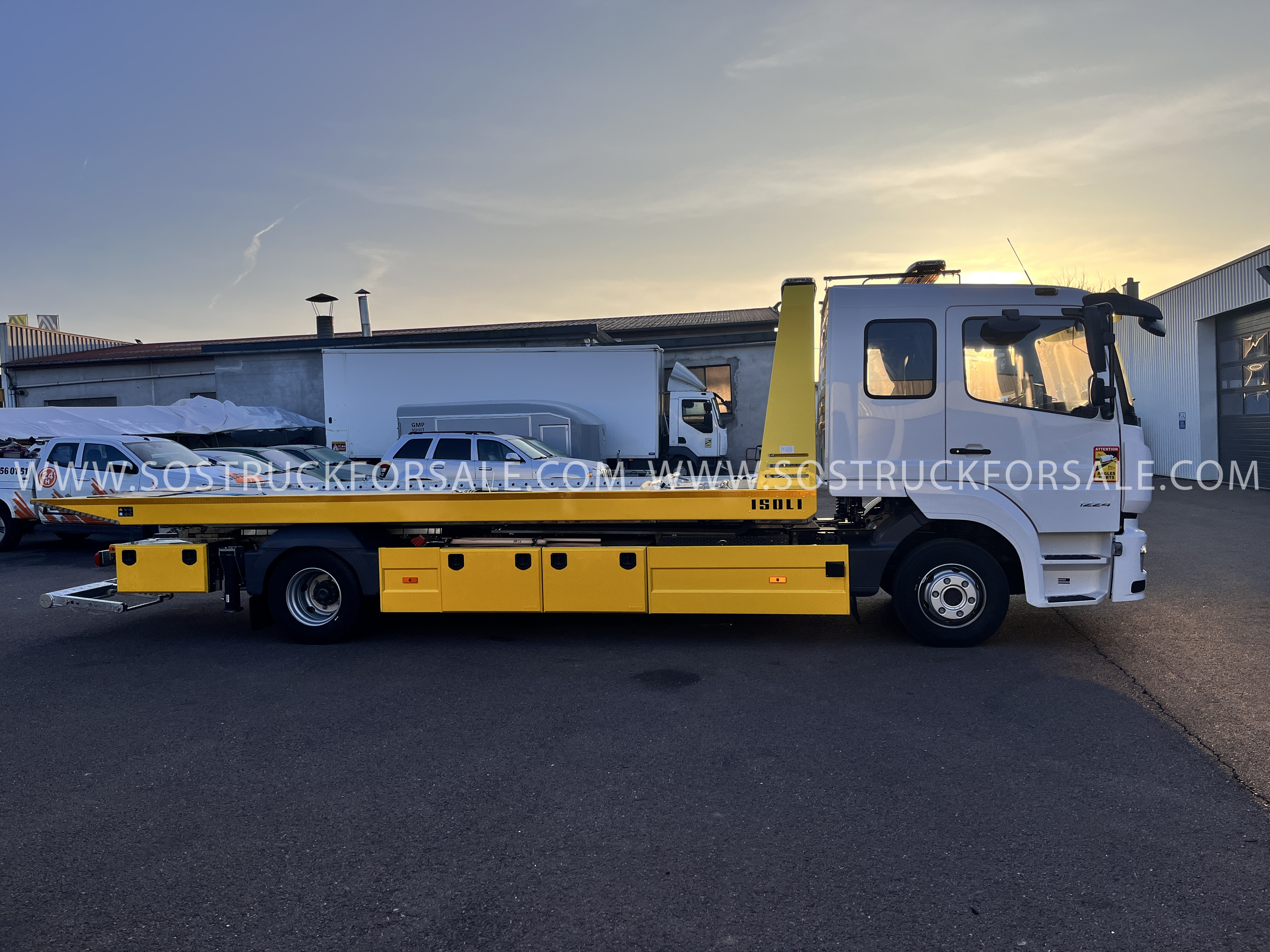 Dépanneuse Plateau à vendre MB Atego 1224 VL 4x2 ISOLI Slide 4 Cabine L 6 places Année : 2026 - 1000 km Prix : 160.000 Euros HT Empattement 4820 mm Boite powerShift Moteur 6 cylindres 7l7 240 cv Compatible biocarburant XTL Blocage de différentiel Couple pont AR 3.636 Equipement ISOLI modèle Slide 4 Plateau coulissant basculant Avec flèche integrée Treuil à déplacement lateral 4,5 t Panier 2,5 t avec treuil 3,6 t Prise 12V/24V de pour cable de démarrage Porte moto Recepissé d'homologation et carte blanche Disponible 15 février 2026 Etude de financement possible