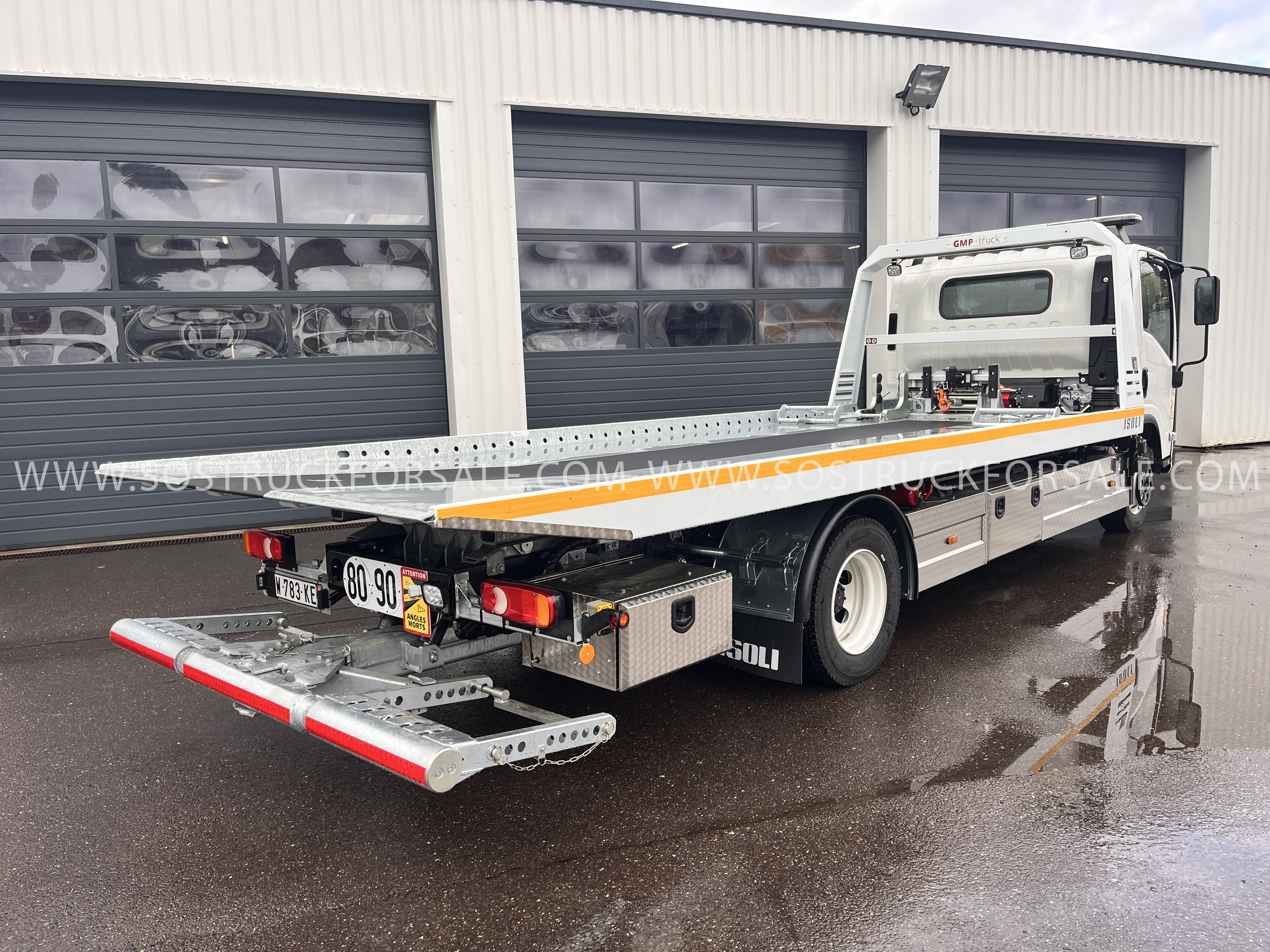 Dépanneuse plateau à vendre ISUZU M30 5,2L 190 cv ISOLI Année: 2026 - 150 km Prix sur demande Boite de vitesse mécanique Empattement 4475 mm Equipement ISOLI TRANSPORTEUR Plateau acier 6100 mm x 2400 mm Galvanisation à chaud Peinture des côtés du plateau forme Blanc Arceau bas Treuil de traction 3600 kg corde 25 m, diam 10 mm Coffre de commande par levier hydraulique avec éclairage 1 coffre de rangement Télécommande 4 fonctions Protection pare cycliste en acier inoxydable Panier de remorquage 2 tonnes