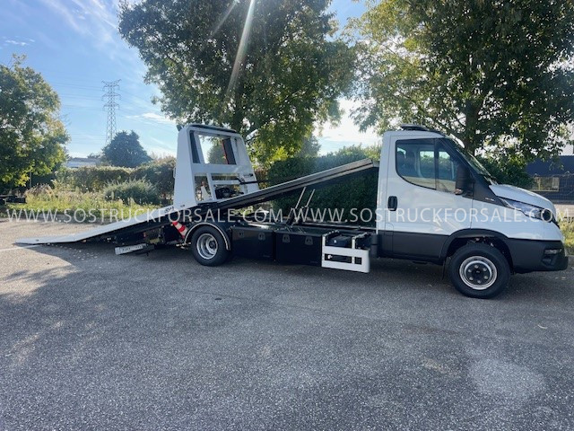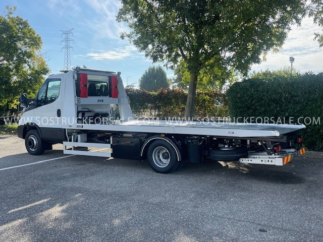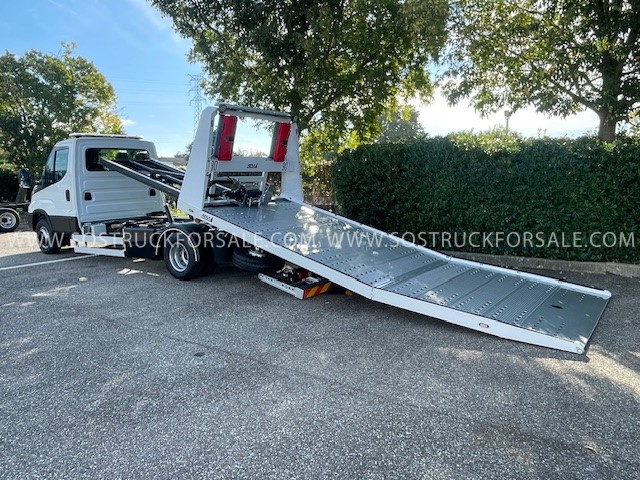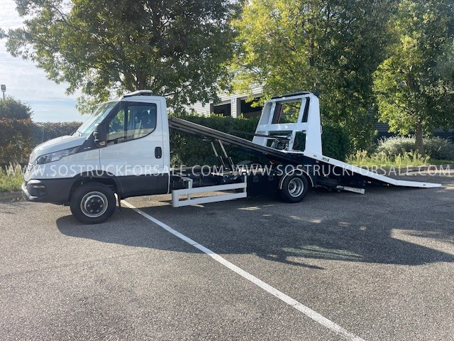 Pack confort plus : blocage diff, suspension pneumatique, climatisation, Hi-connect+GPS Equipement coulissant basculant NEUF 5,30 m x 2,30 m en acier, tôle larmée électrozinguée et peinture gris métal. Plateau avec articulation arrière (diminution d’angle de chargement) Panier de traînage avec fourches réglables latéralement. Treuil hydraulique à coulissement latéral hydraulique. 3629 kg, câble acier, guide à rouleau, déverrouillage mécanique. Commande radio 8 fonctions . 1 Rampe lumineuse LED installée sur Roll bar. 1 Rampe lumineuse LED installée sur cabine. 2 phares de travail à LED installés sur Roll bar. 1 phare de travail à LED installé sur panier. Prise remorquage 12 V sans fils. 4 Feux "flash" installés au latéraux du plateau. 2 Feux "flash" installés sur Roll bar. 2 Feux "flash" installés sur calandre. 2 Prises pour câble démarrage 12 V installées de chaque côté du véhicule avec coupe circuit. 3 coffres à outils métallique avec éclairage LED incorporé. 3 Poulies de renvoie de câble électrozinguée avec 11 emplacements possibles. Jeu de 2 cales de roue avant électrozinguées extra plates + jeu de 2 cales de roue arrière électrozinguées à ressort. Cale support porte moto.
