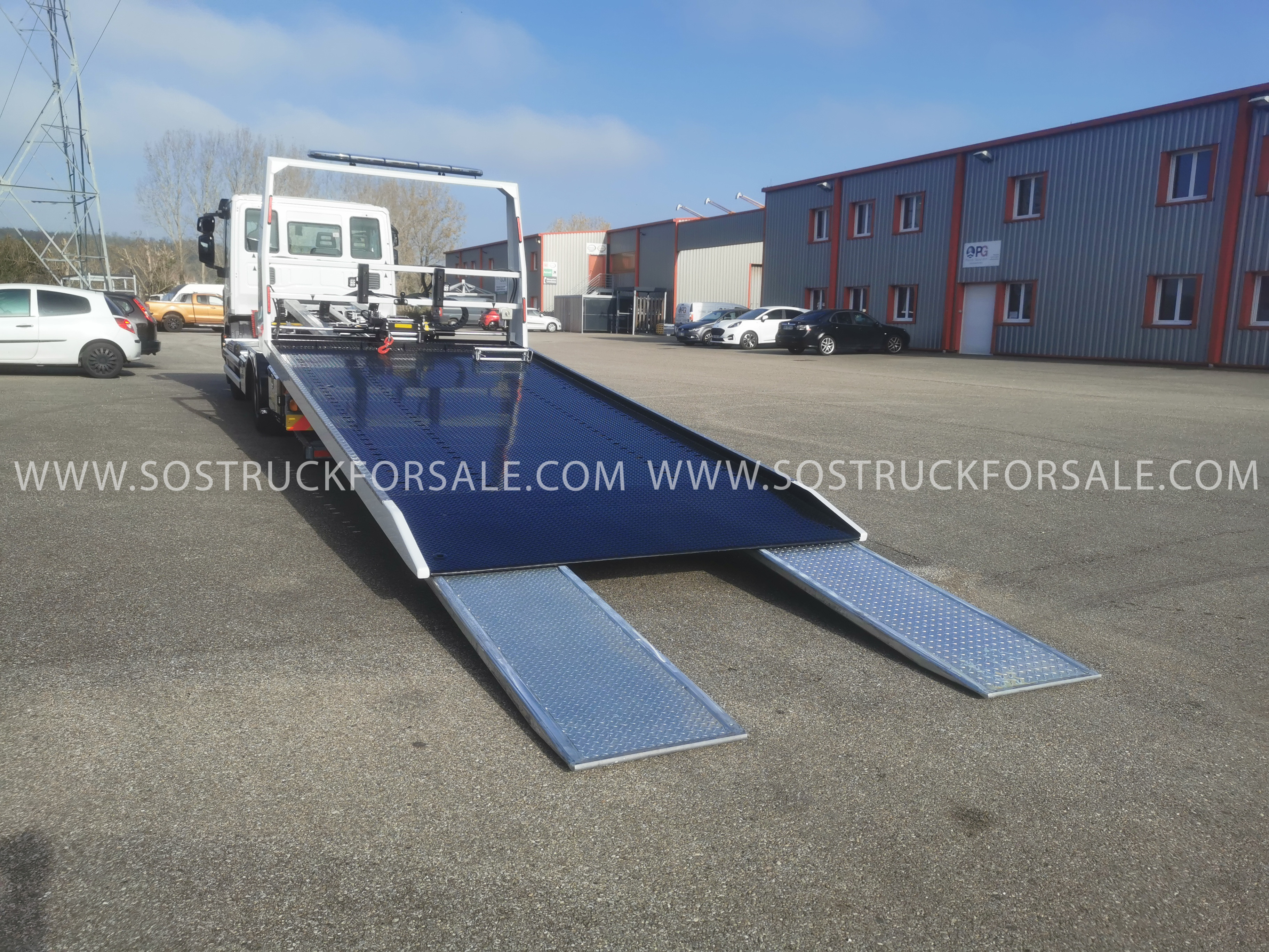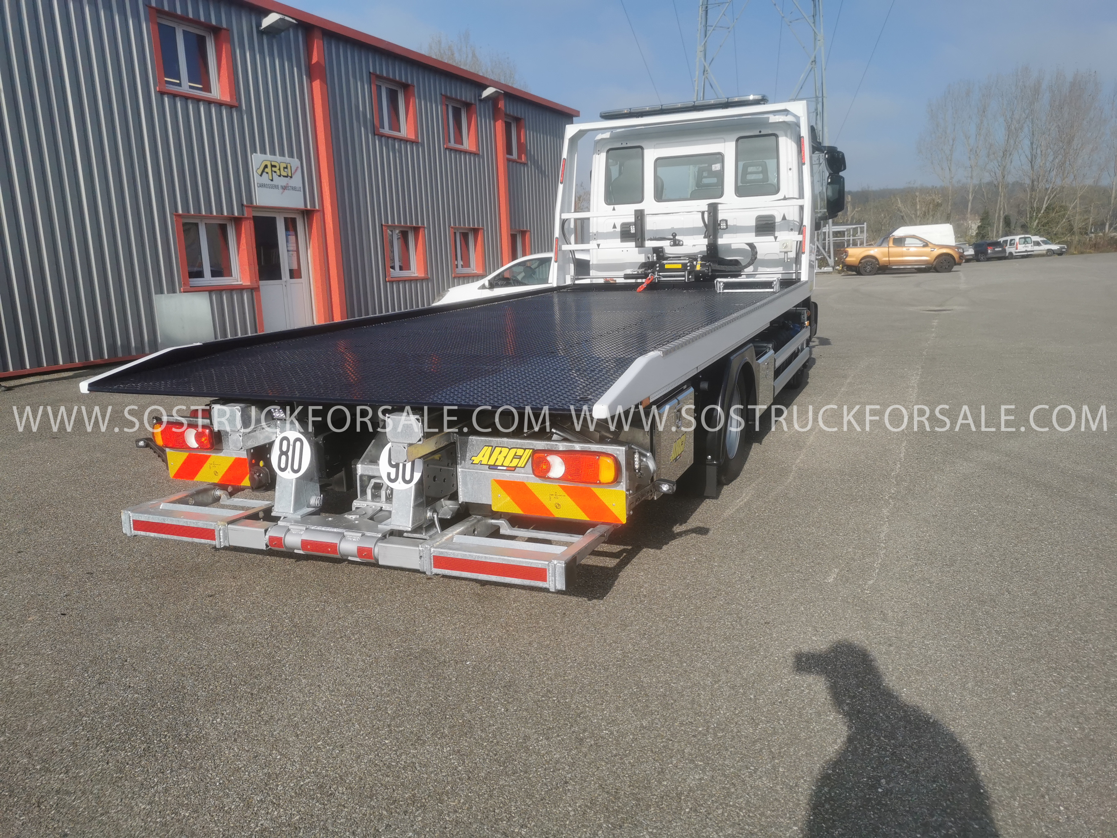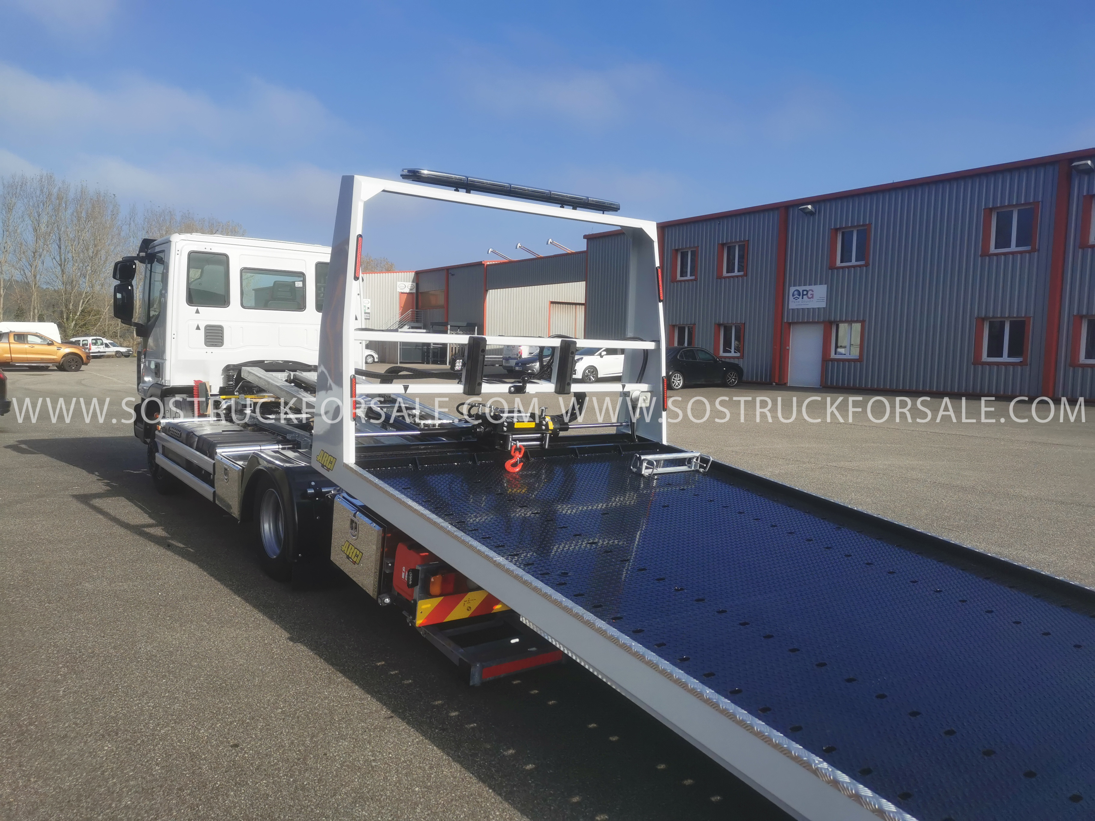 Dépanneuse Neuve à vendre Iveco Eurocargo 120 EL 25 ARCI PTAC : 12t - 250 cv Prix : 126.600 € HT Spécificités châssis: - cabine courte 3 places - visière pare soleil - fermeture centralisée - boite robotisée 61S TRONIC - blocage différentiel - empattement 3690 mm - climatisation EQUIPEMENT ARCY NEUF : - type BC 120 - plateau basculant - longueur 5.50 m largeur 2.40 m - 1 diabolo poulie de renvoi sur 4 positions. - Treuil translation hydraulique - radio commande 10 fonctions excepté le panier. - Panier flèche, tête de grue pour renvoi - rampes de chargement hydraulique