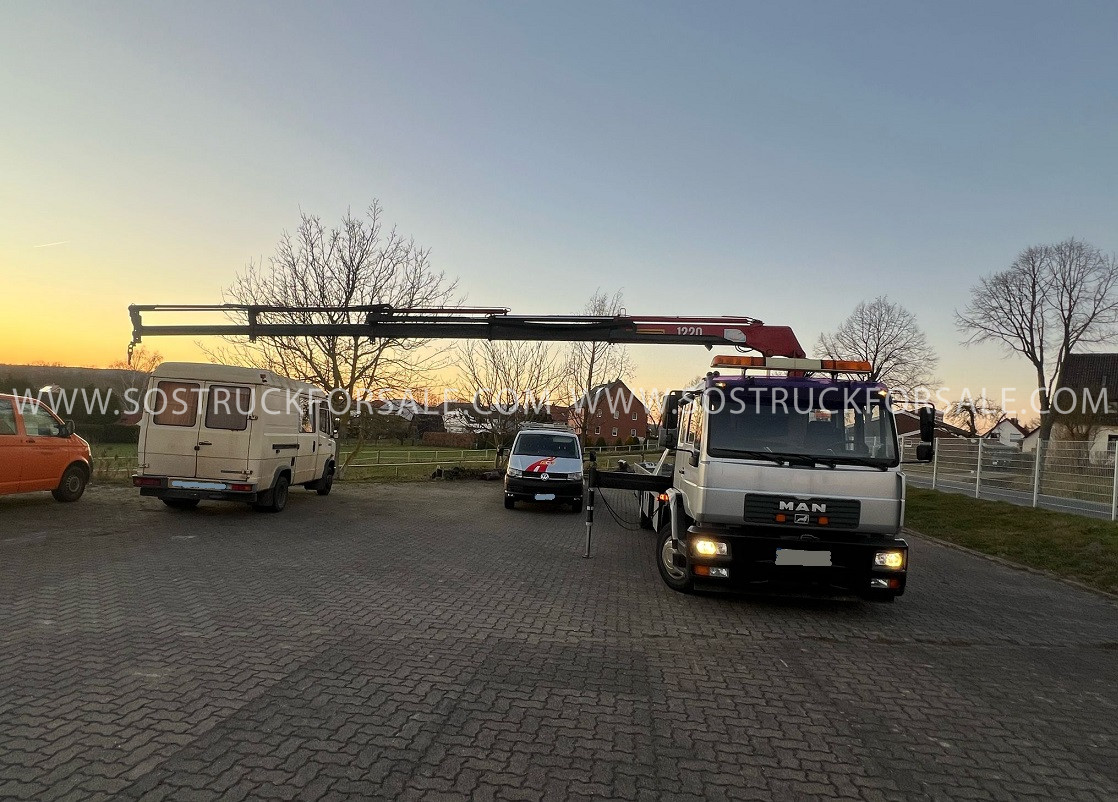 Vends Dépanneuse Plateau Grue MAN 14.220 Cabine 4 places 1ère Main PTC : 14 tonnes - CU : 4,3 tonnes Année : 08/2003 - 190.000 km Moteur 220 cv Prix sur demande Grue HMF 1222 (12t/m) Palonnier fourrière hydraulique Panier de remorquage arrière Treuil 3,8 t radio commandé Plateau Basculant Coulissant Dimensions : 6000 x 2500 mm Pneus bons à 90% Entretien suivi Pas de travaux à prévoir