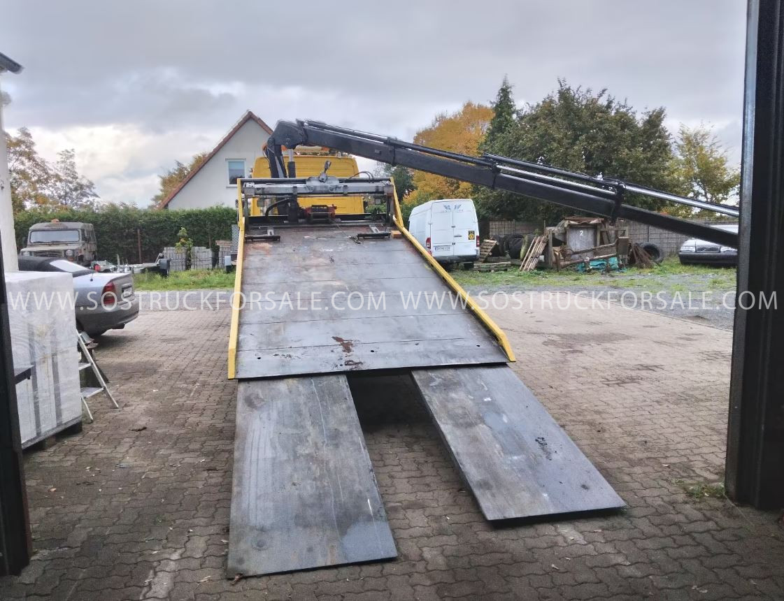 Dépanneuse Plateau à vendre Mercedes Atego 280 cv OMARS Cabine profonde 6 places Poids Total en Charge 13,5 tonnes Grue auxiliaire avec palonnier Année : 2004 - 236.500 km Prix sur demande Equipement plateau Omars Avec rampes extensibles hydraulique Treuil hydraulique variable Climatisation - Pneus neufs Très bon état - Tarif abordable