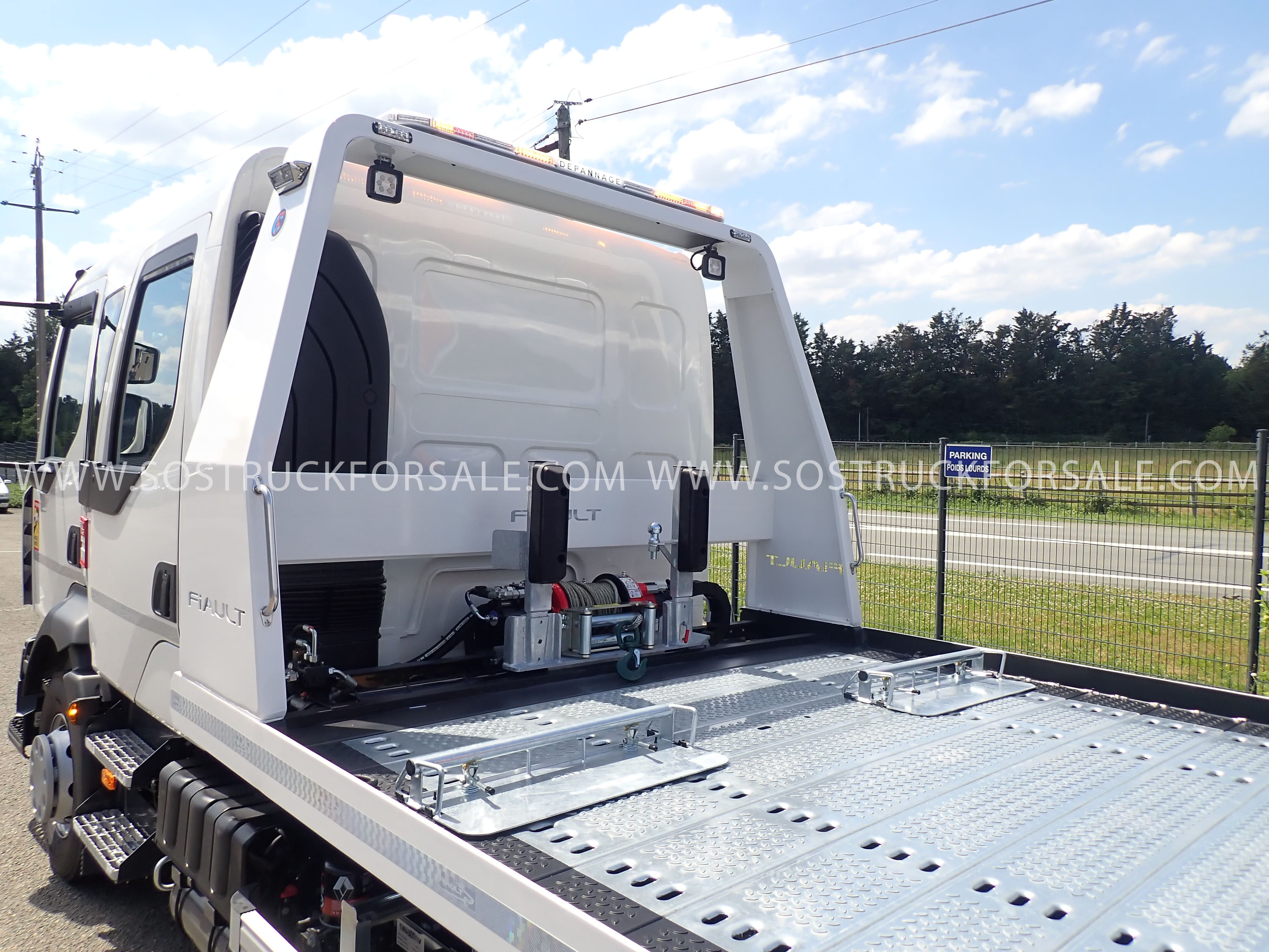 Vends Dépanneuse Plateau Neuve Renault D16 MED P4x2 Double Cabine Fiault PLAT’TRANS PF60 en acier Année : 2025 - 0 km Prix sur demande Equipement FIAULT Porte-voiture basculant coulissant Avec plateforme anti-dérapante Glissières galvanisées Hydraulique à grand débit Vérins double effet avec clapets de sécurité Treuil hydraulique fixe 4,5 t Béquilles arrières réglables avec rouleaux d’appui Idéal pour le transport et le dépannage de véhicules. Dépanneuse conforme au Code de la Route Disponible rapidement.