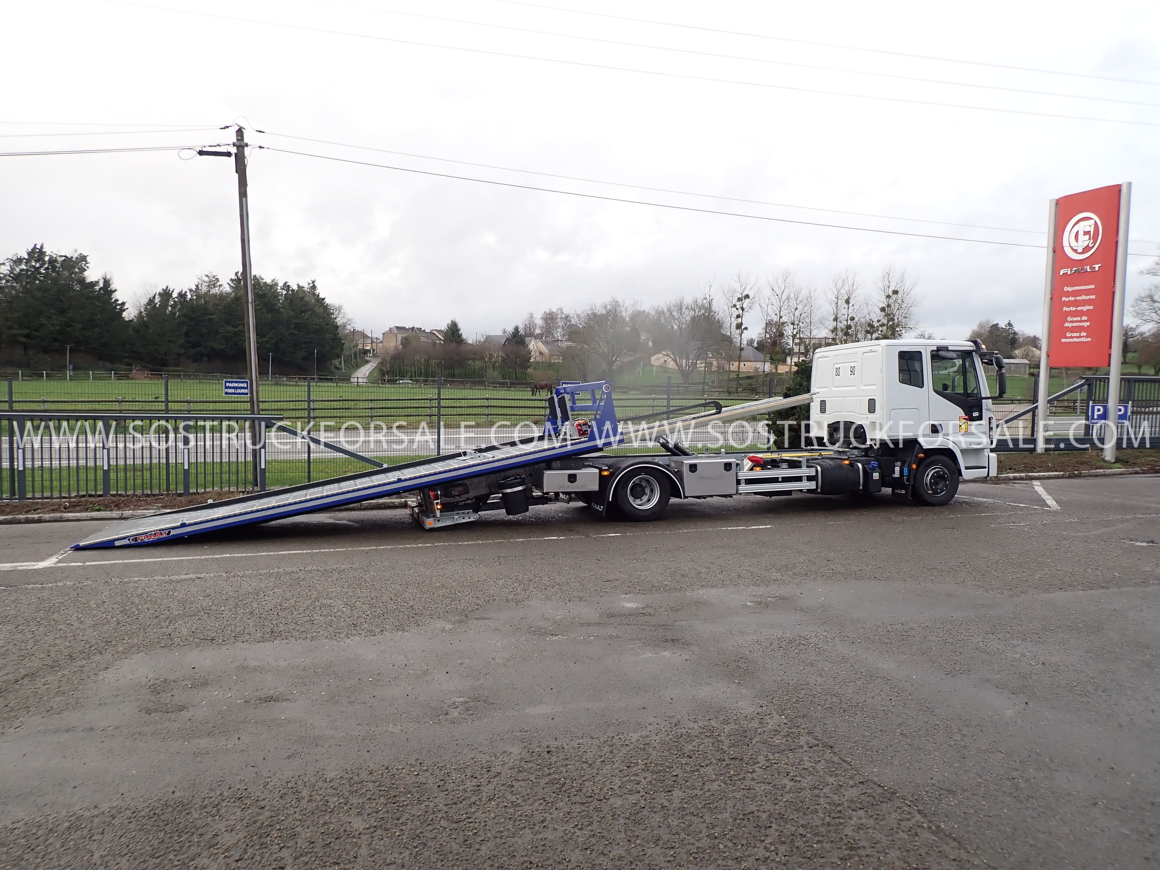 Dépanneuse plateau à vendre Iveco Eurocargo 15t Fiault PF60 Année: 2025 - 0 km Prix sur demande PLAT’TRANS PF60 en acier sur châssis IVECO EUROCARGO 15T, cabine profonde. Porte-voiture basculant et coulissant avec plateforme anti-dérapante. Plateau sur glissières acier galvanisées, hydraulique avec pompe grand débit, vérins à double effet avec clapets de sécurité. Béquilles arrières réglables, treuil hydraulique fixe de 4,5T. Véhicule conforme au Code de la Route. Disponible 2ème trimestre 2026. Contactez-nous pour plus d’infos. (photos non contractuelles)