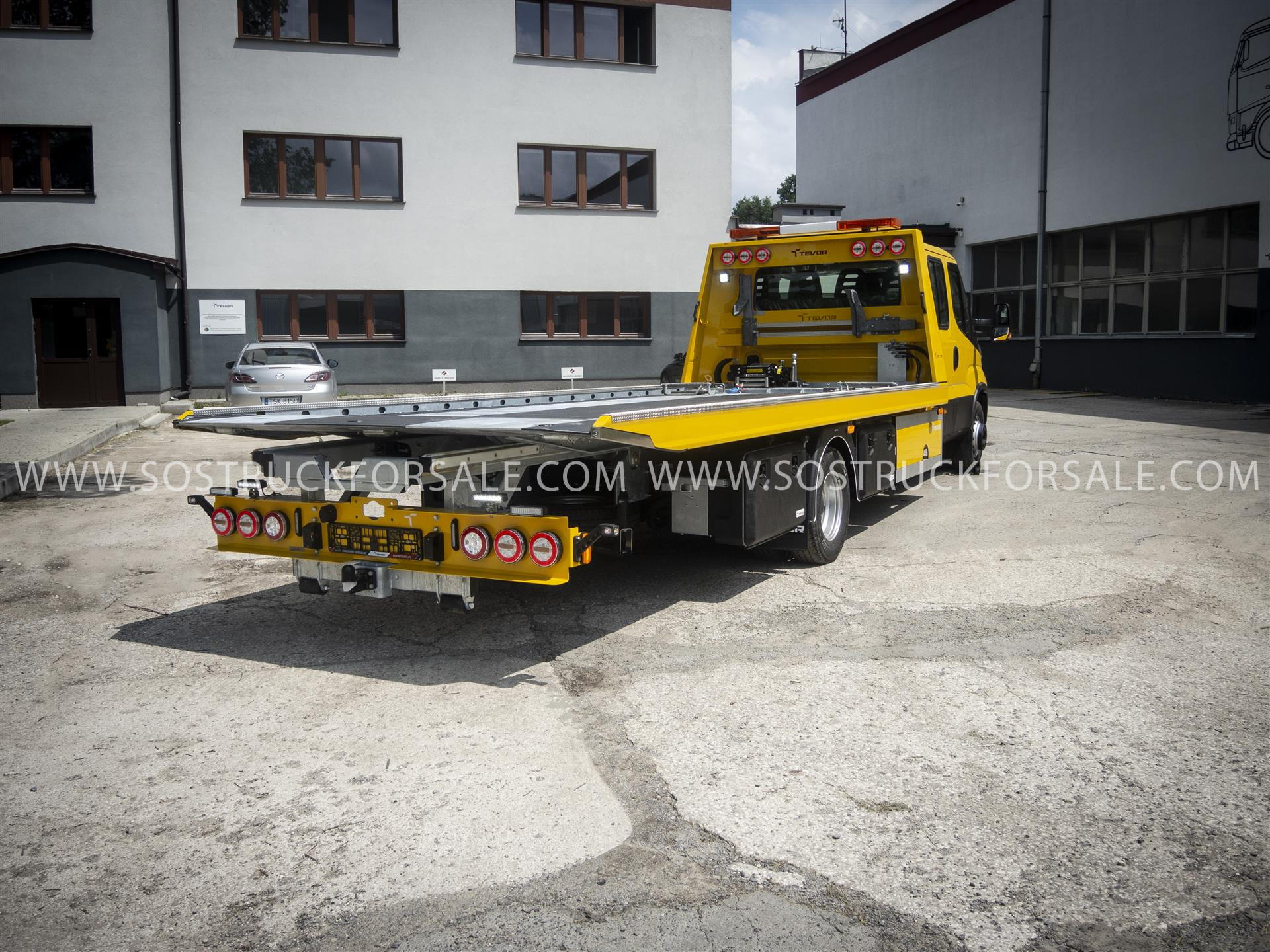 Vends Dépanneuse Plateau TEVOR Plateau coulissant basculant Marque TEVOR type ZP30C1 CHÂSSIS : Iveco Daily 70C18D/P 2025 Longueur : 6050 mm Largeur : 2350 mm. Charge utile technique : 3000 kg Empattement : 5100 mm. PTAC : 7,2 t. Châssis avec suspension pneumatique arrière. PACK ÉVOLUTION. Homologation européenne IVECO/TEVOR pour l'ensemble de la dépanneuse Protection anticorrosion de la plateforme : galvanisation à chaud. Trous à l'intérieur des parois latérales pour la fixation des ceintures. Protection des bords arrière : couvercle en acier inoxydable. Caoutchouc antidérapant. ÉQUIPEMENT Treuil hydraulique d'une capacité de traction max. de 3500 kg - COMEUP, type HV8. Serrage du câble du treuil. Réglage latéral hydraulique du treuil. Feu d'avertissement LED 1500 mm. Feux d'avertissement LED, BLTZ, avant/arrière. 4 phares de travail. Feux arrière à LED. Télécommande sans fil EH 8 canaux. Attelage 3,5 t, prise électrique. Prise de démarrage 12 V. Support de transport pour moto. Kit de nettoyage. 1 panier coulissant. 2 boîtes à outils. 1 boîtier de commande. Antivols de roues réglables.