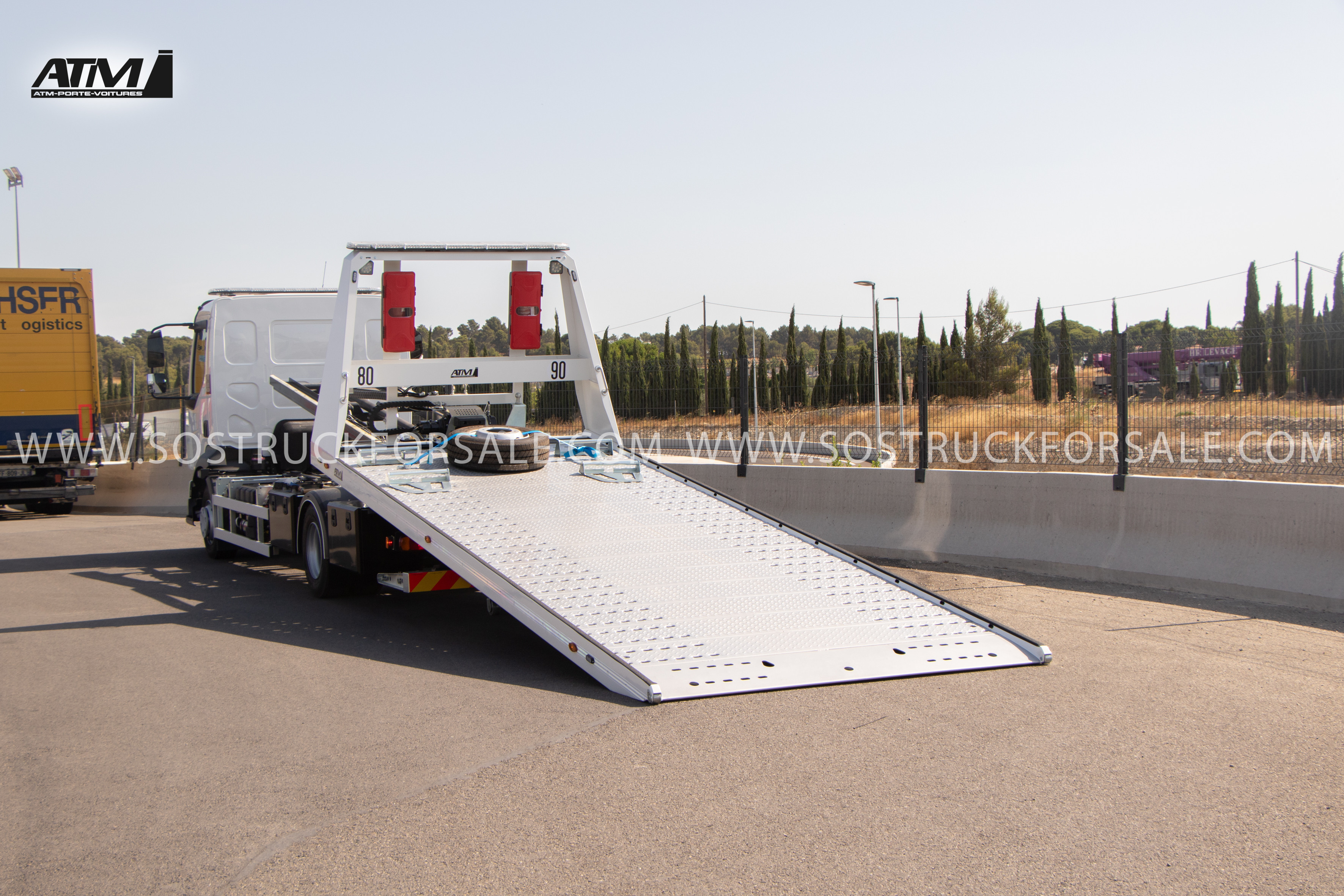 Dépanneuse Neuve disponible en cour de carrossage, livraison fin 2025 : BVA, blocage différentiel, suspension pneumatique AR, climatisation, Equipement coulissant basculant NEUF 6,50 m x 2,40 m en acier, tôle larmée électrozinguée et peinture gris métal. Jeu de rampes télescopiques hydrauliques indépendantes extension 2 metres. Panier de traînage avec fourches réglables latéralement. Treuil hydraulique à coulissement latéral hydraulique 4536 kg, câble acier, guide à rouleau, déverrouillage p,eumatique. Commande radio 12 fonctions (sauf panier) . 1 Rampe lumineuse LED installée sur Roll bar. 1 Rampe lumineuse LED installée sur cabine. 2 phares de travail à LED installés sur Roll bar. 1 phare de travail à LED installé sur panier. Prise remorquage sans fils. 4 Feux "flash" installés au latéraux du plateau. 2 Feux "flash" installés sur Roll bar. 2 Feux "flash" installés sur calandre. 2 coffres à outils métallique avec éclairage LED incorporé. 2 Poulies de renvoie de câble électrozinguée avec 8 emplacements possibles. Jeu de 2 cales de roue avant électrozinguées extra plates + jeu de 2 cales de roue arrière électrozinguées à ressort. Cale support porte moto avec sabot articulé.