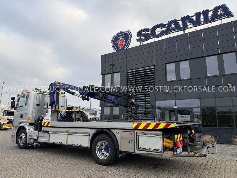 Dépanneuse Plateau à vendre Scania G280 Tischer État Neuf Cabine 4 places Boite Automatique Jantes Alu Alcoa Dura-Bright Climatisation Année : 06/2012 - 39.000 km 1ère Main Équipement dépanneuse Tischer Plateau Basculant Coulissant Panier de remorquage 3 tonnes Treuil Hydraulique L'ensemble est radio commandé Grue Palfinger 18 t/m Radiocommandée Chassis Parafiné, Zéro corrosion Prix 159.000€ net Nous pouvons organiser le transport de la dépanneuse jusqu'en France ou n'importe quel pays Européen. Appeler Rafał Sienkiewicz : WhatsApp N° +48 604 940 598