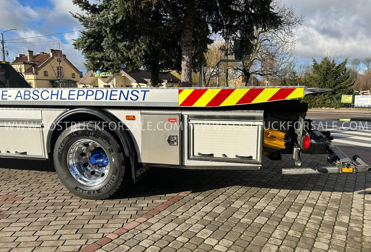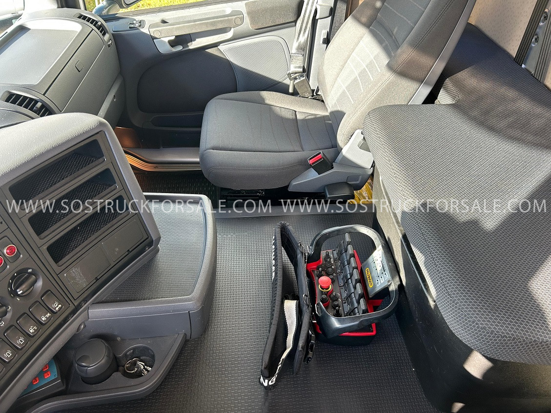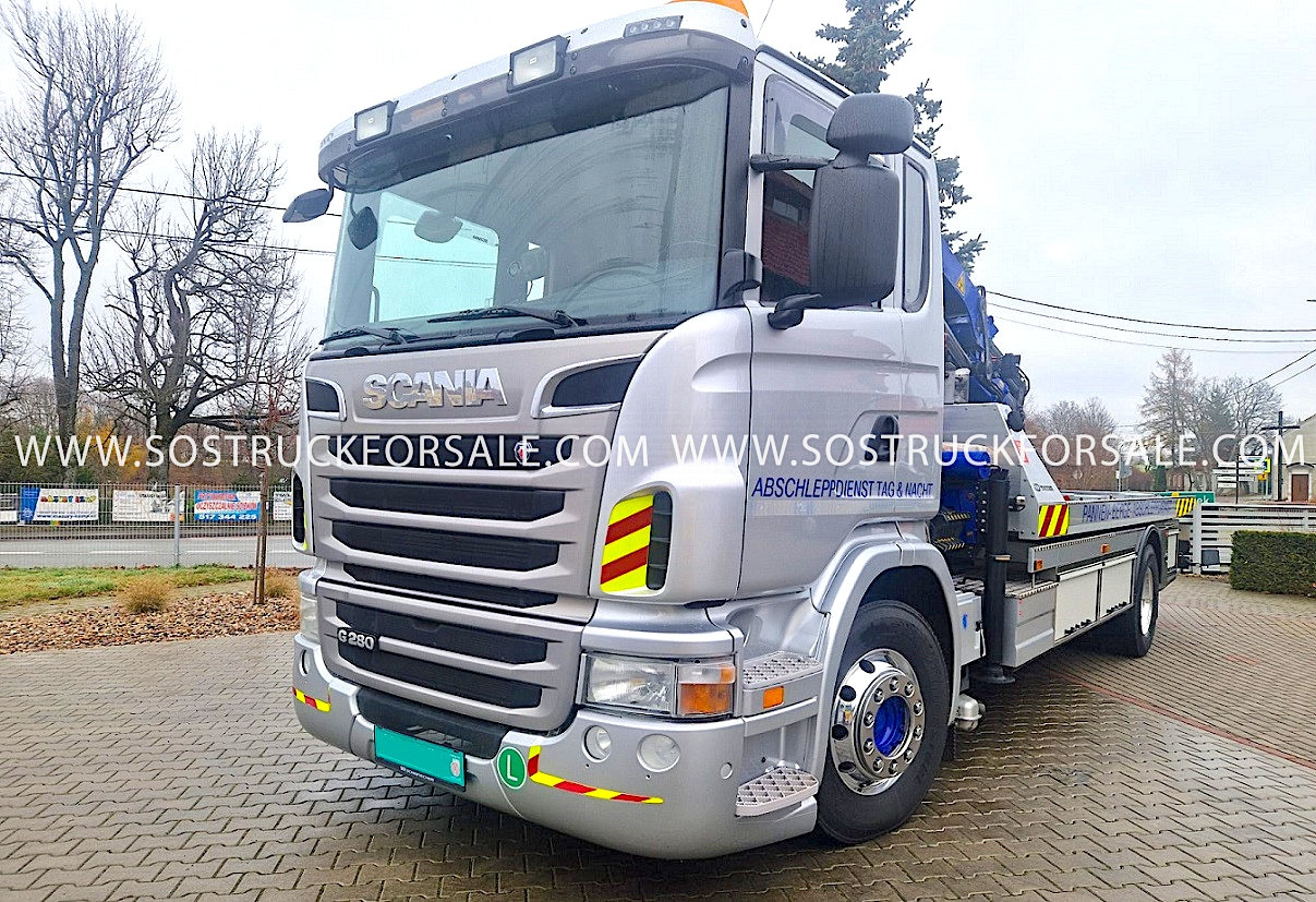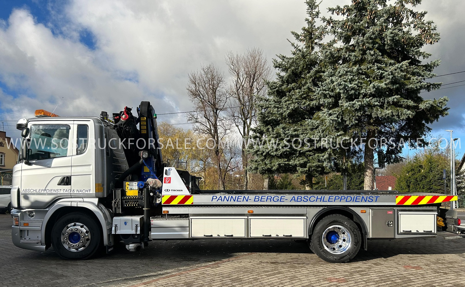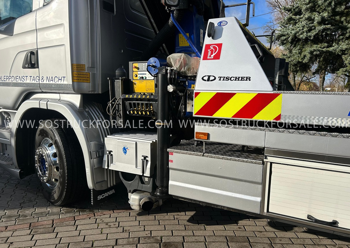 Dépanneuse Plateau à vendre Scania G280 Tischer État Neuf Cabine 4 places Boite Automatique Jantes Alu Alcoa Dura-Bright Climatisation Année : 06/2012 - 37.000 km 1ère Main Prix sur demande Équipement dépanneuse Tischer Plateau Basculant Coulissant Panier de remorquage 3 tonnes Treuil Hydraulique L'ensemble est radio commandé Grue Palfinger 18 t/m Radiocommandée Chassis Parafiné, Zéro corrosion