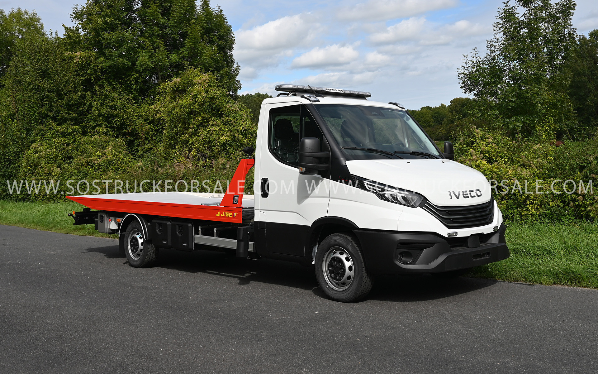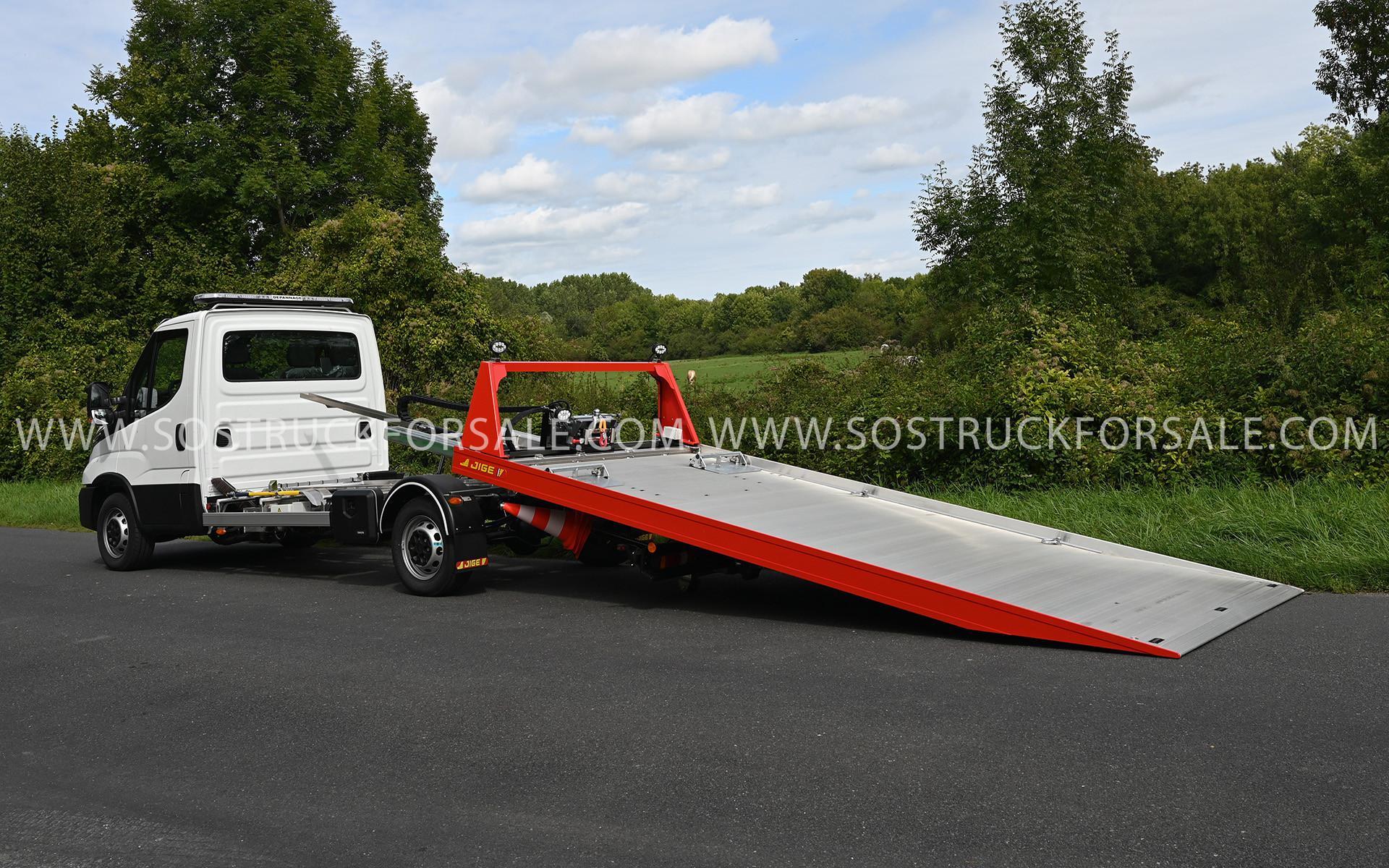 Dépanneuse Neuve Ref 14207 - Prix sur Demande • Plateau basculant coulissant sur faux-châssis et basculeur tout aluminium avec mise à dimensions optimisée du porte à faux. • Fonctions hydrauliques avec amortissement de fin de course integré pour éviter les à-coups. • Plateau de dimensions 4800 x 2060mm et poids 680 kg assemblé tout en aluminium avec une partie arrière inclinée pour un chargement plus aisé (right angle), rouleaux sous sifflet incorporés et 4 anneaux d'arrimage orientables montés latéralement. • Basculeur avec stabilisateurs arrière fixe. • Rollbar plateau aluminium monté sur silent-blocs. • Treuil hydraulique capacité 8000lbs avec câble synthétique lg 20 mètres et crochet, à déplacement latéral en alignement libre ou verrouillable. • Guide-câble à rouleaux et rotule diamètre 50mm au-dessus du treuil. • Système hydraulique haute performance, avec pompe haut de gamme, réservoir, distributeurs, valves d'équilibrage, flexibles et filtre fournis en qualité supérieure. • Coffre de commandes éclairé avec porte, positionné sur le côté droit. • Barres latérales anti-encastrement. Des ailes arrière intégrales terminent la ligne de l'équipement.