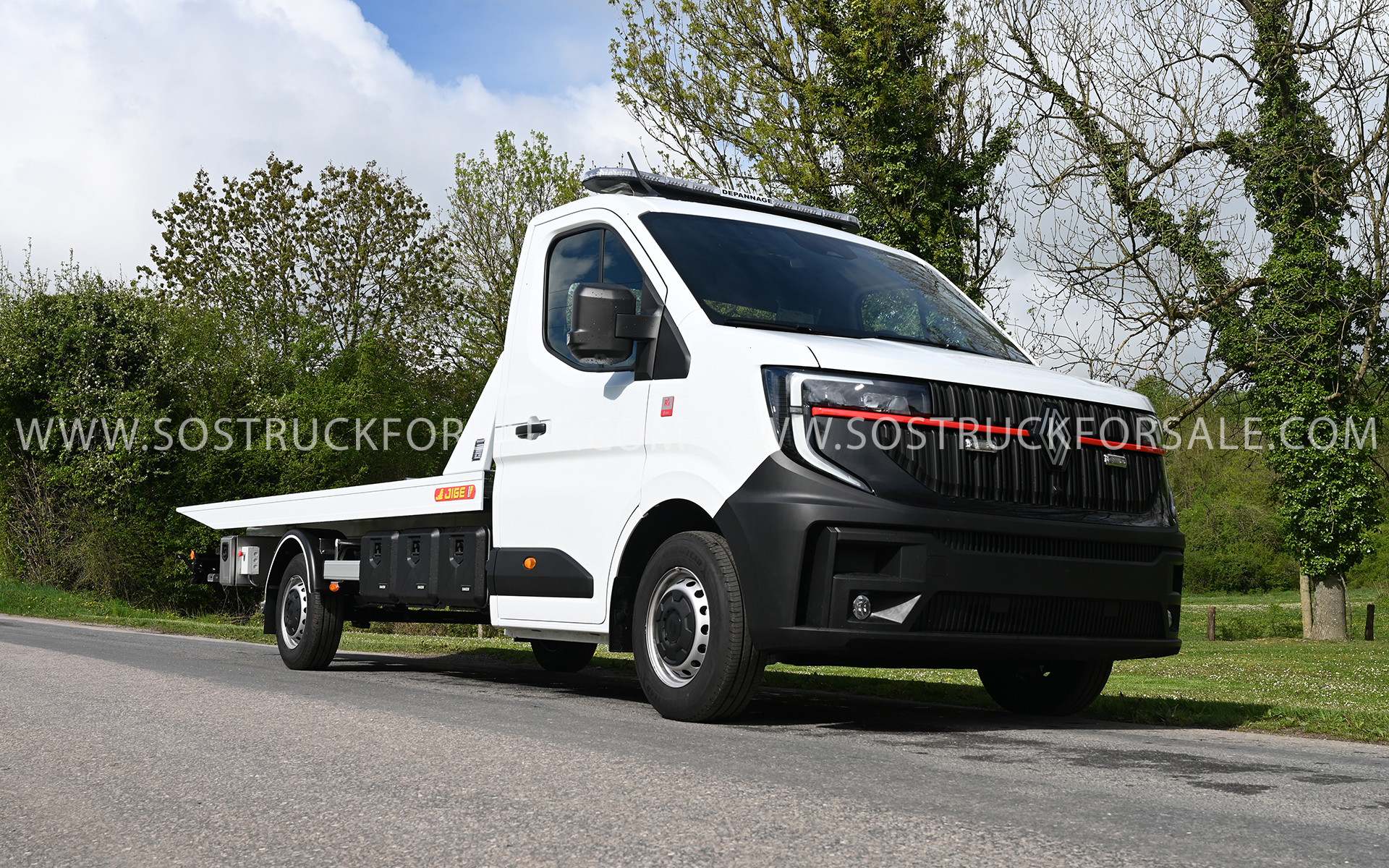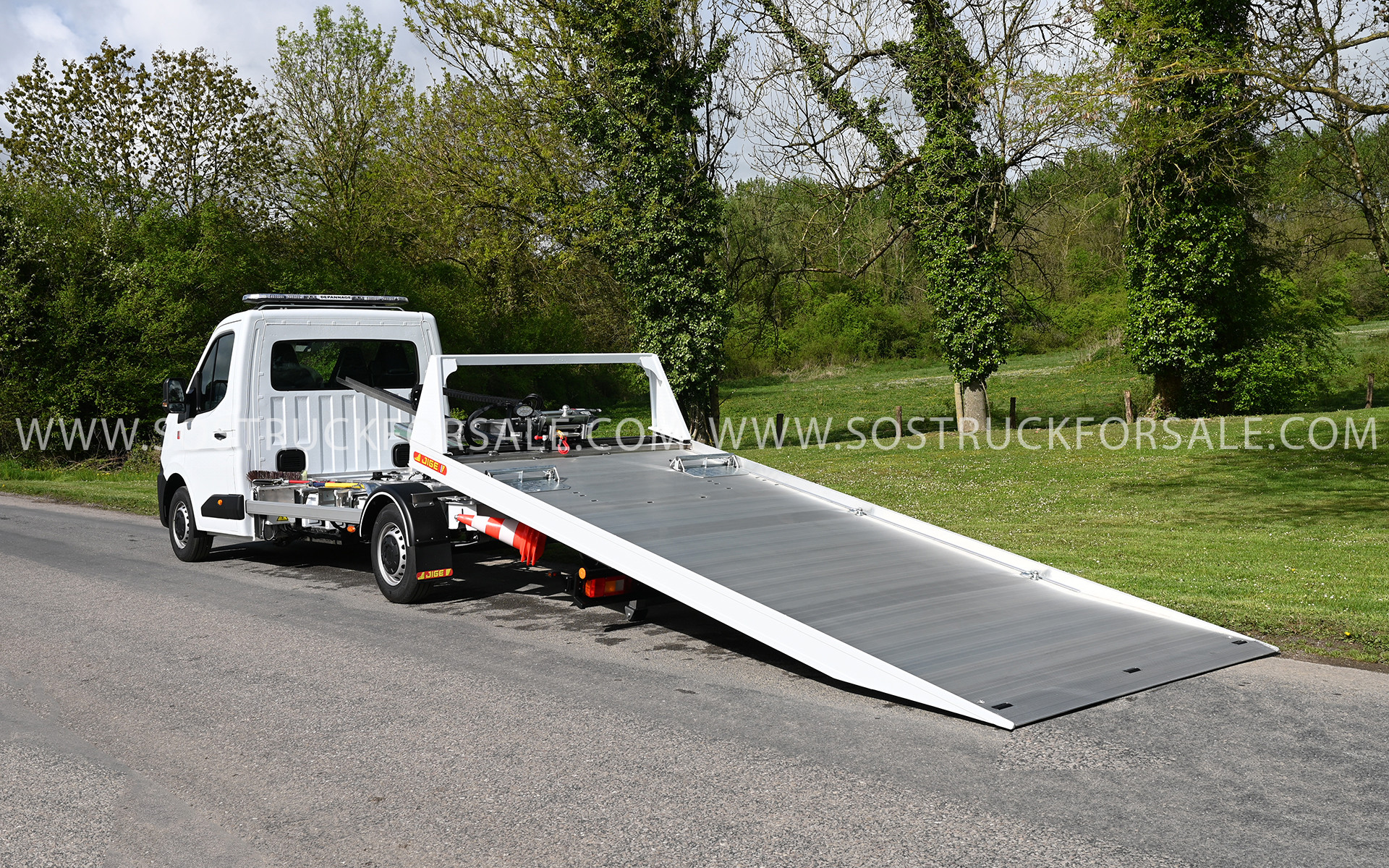 Dépanneuse Neuve Ref 14366 - Prix sur Demande • Plateau de dimensions 4800 x 2060mm et poids 680 kg assemblé tout en aluminium avec une partie arrière inclinée pour un chargement plus aisé (right angle), rouleaux sous sifflet incorporés et 4 anneaux d'arrimage orientables montés latéralement. • Basculeur avec stabilisateurs arrière fixe. • Rollbar plateau aluminium monté sur silent-blocs. • Treuil hydraulique capacité 8000lbs avec câble synthétique lg 20 mètres et crochet, à déplacement latéral en alignement libre ou verrouillable. • Guide-câble à rouleaux et rotule diamètre 50mm au-dessus du treuil. • Système hydraulique haute performance, avec pompe haut de gamme, réservoir, distributeurs, valves d'équilibrage, flexibles et filtre fournis en qualité supérieure. • Coffre de commandes éclairé avec porte, positionné sur le côté droit. • Finition bordures de rives et rollbar plateau effectuée par une couche d'apprêt et de finition utilisant des composants peinture de qualité automobile. • Barres latérales anti-encastrement. Des ailes arrière intégrales terminent la ligne de l'équipement.
